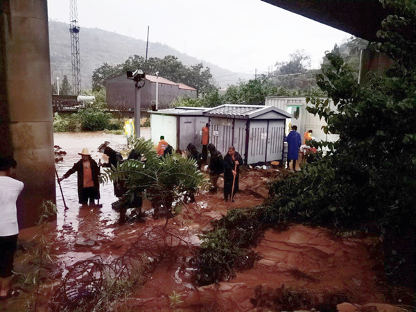 7月20日10時35分,鼎漢技術(shù)鄭州辦事處售后服務(wù)人員接到鄭州鐵路部門用戶關(guān)于鄭西客專某站設(shè)備遭遇水淹斷電的救援電話。經(jīng)過簡單了解現(xiàn)場信息,售后人員判斷這不是一次常規(guī)的技術(shù)支援,情況不容樂觀。簡單的準(zhǔn)備之后,公司兩位老員工先后火速趕往現(xiàn)場。由于道路被淹車輛無法通行,一波三折,最后轉(zhuǎn)乘鐵路軌道救援車到達(dá)現(xiàn)場。盡管有所預(yù)判,現(xiàn)場的情況還是讓久經(jīng)考驗的兩位老兵傻了眼,由于機(jī)房處在橋隧之下,低洼之處,三分之一機(jī)房泡在水中,周圍全是被暴雨沖積的雨水污泥,雨還在時斷時續(xù)時大時小下著。