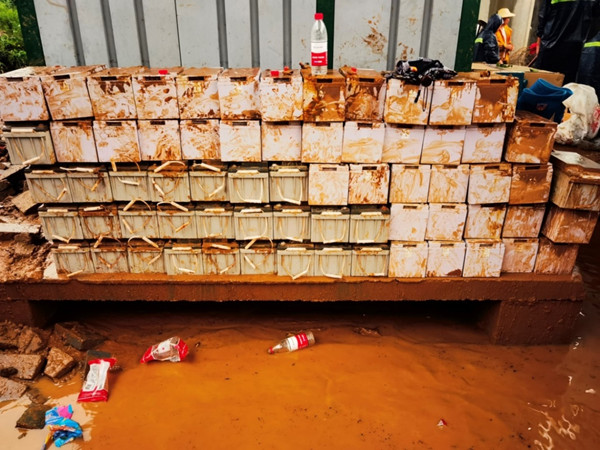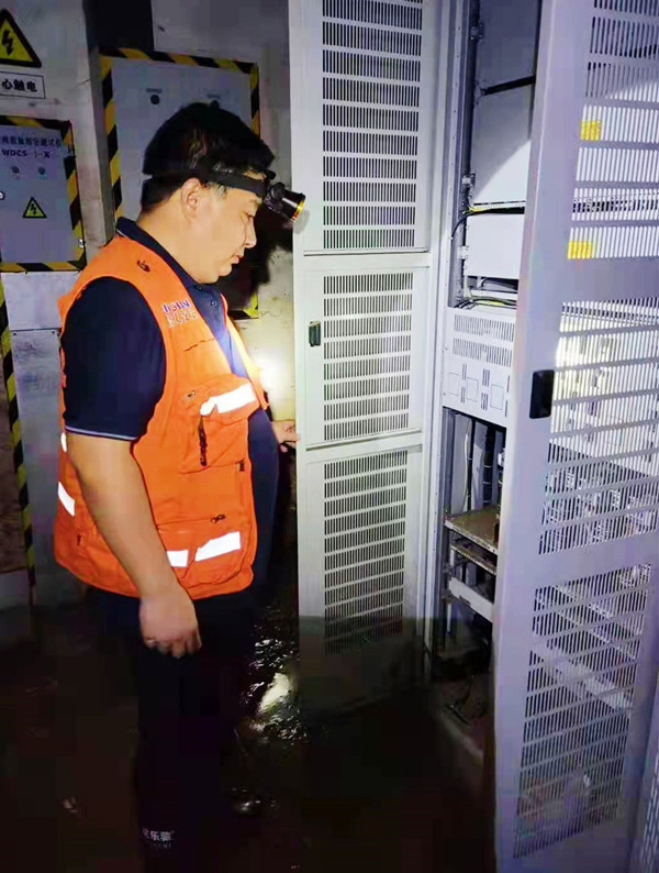 如何進(jìn)入機(jī)房?是否存在漏電?設(shè)備受損情況如何?一系列的問題困擾著所有參與救援的人員,而另一方面,由于高鐵列車晚點停運造成大量旅客積壓,形勢非常緊迫,刻不容緩。最終,在鐵路主管部門組織和領(lǐng)導(dǎo)下,在盡可能保證人員安全的前提下,只能邊排水邊搶修。搶修人員淌著洪水進(jìn)入機(jī)房對設(shè)備去污、烘干,對于不能繼續(xù)使用的模塊,板件進(jìn)行更換。經(jīng)過兩天一夜不間斷奮戰(zhàn),于7月21日晚上信號電源屏成功送電保證信號設(shè)備的正常運行,23日完成了配套UPS以及蓄電池的安裝。最終經(jīng)過四天三夜的奮戰(zhàn),完全恢復(fù)了信號系統(tǒng)穩(wěn)定供電。售后兩位同事全程基本沒有休息,僅用隨身攜帶的面包礦泉水充饑,困乏到極致就用一些設(shè)備包裝材料鋪在泥濘潮濕的地上臨時休息一下,克服了重重困難完成了搶修任務(wù)。