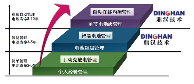 Through battery automatic on-line balancing, detection and charging and discharging management can be made on line for each battery; through the advanced battery management technology (a battery management technology through combining hardware with software), each battery cell in the whole battery pack can work in good condition and the whole pack of batteries have better consistency, so that the service life of the batteries are greatly extended (up to 7-8 years).
